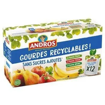 A gourmet portion of fruit in a gourd to take with you everywhere! And what's more, the gourd is recyclable. Recipes with a sifted texture and no added sugars (in accordance with the regulations for purees, contains sugars naturally present in the fruit). Andros is a French family business based in Biars-Sur-Cère, in the Lot.