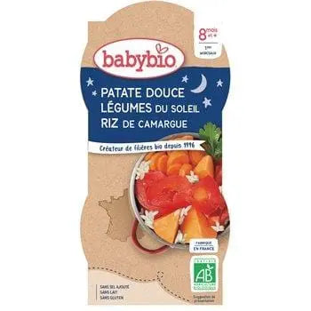French sweet potatoes* 37%, French carrots* 24%, cooking water, Spanish peppers*, French onions* 7.5%, Aquitaine tomato purée* 5%, IGP Camargue rice* 4%, vegetable oils* (rapeseed*, sunflower*), French parsley*. *Ingredients from organic farming.