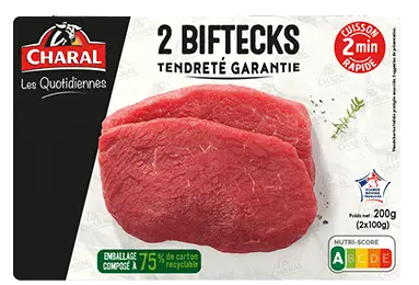 Discover the steak, this tender and fine piece carefully selected by our butchers. Remove the meat from its packaging 5 minutes before cooking. Vacuum-packed meat is naturally darker, but will recover its colour within a few minutes.