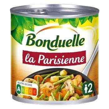 Potatoes 31%, green beans 26%, carrots 21%, onions 7.7%, button mushrooms 6.7%, water, extra virgin olive oil, mustard (water, mustard seed, spirit vinegar, salt) 0.8%, salt, thyme 0.2%, wheat flour, antioxidant: ascorbic acid, natural rosemary extract, natural pepper flavour.