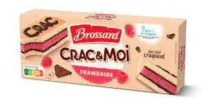 Crac & Moi, the soft cake that will make you crack! A cake with a crunchy chocolate heart, a generous recipe for a real moment of pleasure! Discover the pleasure of a crunchy and soft cake with a delicious raspberry flavour. Soft cake with dark chocolate bar and raspberry filling, flavoured.