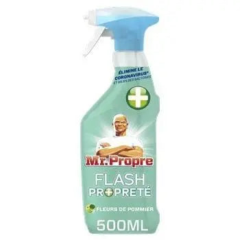 Mr. Clean Flash Cleaner will change the way you clean your surfaces, with 3 simple steps: spray, wipe, done. Spray it everywhere, wipe it down and you're already done. It couldn't be easier. It instantly removes grease from your surfaces without any extra steps, no brushing, no streaking. It leaves nothing behind but sparkling clean surfaces, killing 99.9% of bacteria. Available in the incredible "Fleurs De Pommier" fragrance.