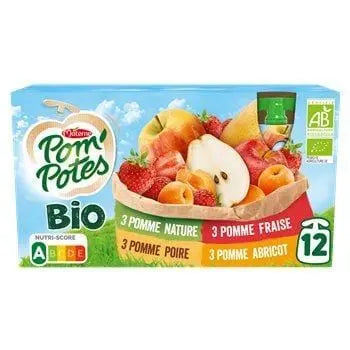 Give your children pleasure with this Organic Pom'Potes range to be consumed at any time of the day! Pom'Potes with its Organic range offers quality products from organic farming, respecting the rules of nutrition, for the well-being and pleasure of children! One Pom'Potes gourd corresponds to 1 of the 5 recommended daily portions of fruit and vegetables. Low sugar recipes* and agriculture that respects the environment, the cycle of the seasons and the different natural balances. Recipes without preservatives: a simple pasteurisation process allows the bottles to be kept at room temperature without the addition of preservatives. Easy opening of the bottles by children with the more practical Héli'Bouchon. *30% less sugar than a classic compote.