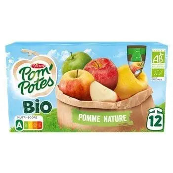 Give your children pleasure with this Organic Pom'Potes range to be consumed at any time of the day! Pom'Potes with its Organic range offers quality products from organic farming, respecting the rules of nutrition, for the well-being and pleasure of children! One Pom'Potes gourd corresponds to 1 of the 5 recommended daily portions of fruit and vegetables. Low sugar recipes* and agriculture that respects the environment, the cycle of the seasons and the different natural balances. Recipes without preservatives: a simple pasteurisation process allows the gourds to be kept at room temperature without the addition of preservatives. Easy opening of the gourds by children with the more practical Héli'Bouchon. *30% less sugar than a classic compote.
