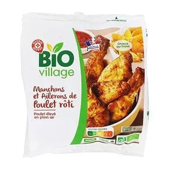 Chicken breasts and wings (origin: France) 85.5%, water, dextrose, potato starch, salt, cane sugar, chicory. All ingredients are sourced from organic farming. This product is manufactured in France and the chicken is also sourced from France.