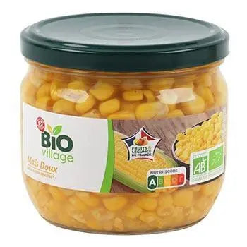 This product contains sweet corn grains, water, sea salt, and concentrated lemon juice. All ingredients are sourced from organic farming. The product is made in France, with corn also originating from France.