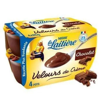 Velours de Crème au Chocolat au lait by La Laitière is a new dessert experience with its particularly smooth texture and great chocolate taste. It is the most chocolate-intense cream dessert on the market thanks to its 20% chocolate in the recipe. It contains more than 50% milk, it is made in Bayeux in Normandy from good French milk.