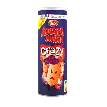 Monster Munch Crazy is a new range of crisps in a tube to appeal to older children. These monster shaped crisps come with different expressions in each tube, offering a very crunchy texture for more sensations. Each practical and resistant 150g tube format contains 4 "crazy faces". Monster Munch Crazy tiles are made in France and contain no palm oil, no colouring, and no preservatives.