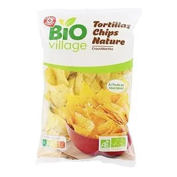 This product is made from 77% corn flour, 21% sunflower oil, and a touch of sea salt. All ingredients are organically produced. The corn flour is processed in France, Romania, and/or Ukraine, depending on the supplies and the desired taste characteristics. The product is manufactured in Belgium.