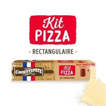 Easy and fun to prepare. Quick with the essentials of a delicious pizza put together in a kit, then the topping is usually made up of "leftovers" from the fridge. Rectangular dough, 19 x 36 cm for 6 to 8 slices. Fun packaging design, targeted "Family".