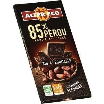 Discover Alter Eco's 85% cocoa dark chocolate from Peru and let yourself be carried away by its red fruit notes. Organic and fair trade, this is the ideal chocolate bar for more responsible consumption from breakfast to snack time.
