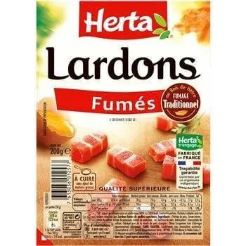 With HERTA Beechwood Smoked Bacon cubes you can make your recipes in no time at all. High-quality, practical and tasty, they are an indispensable ally for every cook! In savoury pies, pizzas and toppings. In carbonara or in salads: enjoy HERTA diced lardons.