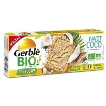 WHEAT flour* 68.6%, cane sugar*, oleic sunflower oil*, blue poppy seeds* 5.1%, WHEAT bran*, shredded coconut* 2.5%, natural coconut flavouring. *Ingredients from organic farming. Made in a workshop that uses NUTS, LUPIN, MILK, SESAME, and SOY.
