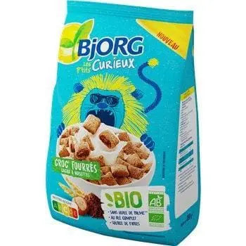 Discover Bjorg's filled croc' and treat your children to a gourmet breakfast. Organic, sources of fibre and made from wholemeal wheat, these cocoa and hazelnut-based cereals are a perfect part of a balanced breakfast.