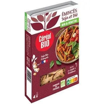 Soy and wheat based meat substitute that mimics the conventional benchmark in terms of visuals, texture and taste. Made in France and with 100% French organic soy.