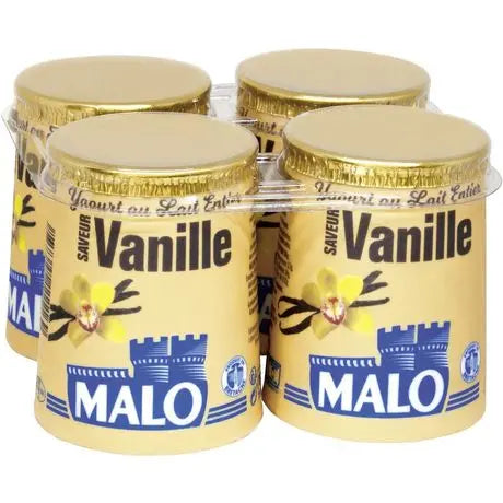 Experience the authentic taste of Brittany with Malo Vanilla Yoghurt 4x125g . Crafted by the renowned Laiterie de Saint-Malo, this yogurt combines traditional French dairy expertise with high-quality ingredients to deliver a smooth, creamy texture and a delicate vanilla flavor.