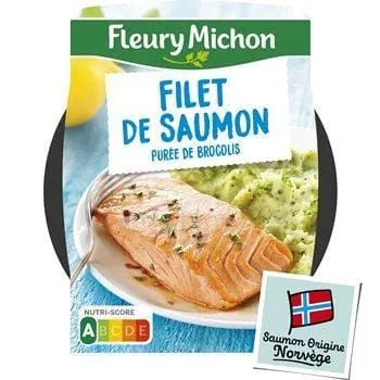 Rehydrated skimmed milk, SALMON 21.6%, broccoli 18%, potato flakes 7.5%, water, rice cream, fresh CREAM 2.8%, BUTTER, salt, turmeric, spice extract, emulsifier: mono and diglycerides of fatty acids.