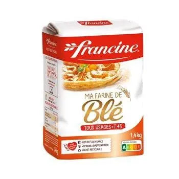 Francine T45 All-Purpose Wheat Flour is a finely milled soft flour ideal for French-style baking and patisserie. Known for its smooth texture and light consistency, this type 45 flour is perfect for preparing crêpes, cakes, choux pastry, and tender baked goods. With low protein and high fluidity, it ensures light, airy results while being easy to incorporate into any batter or dough. Made with premium French wheat, it's a staple in both home and professional kitchens.