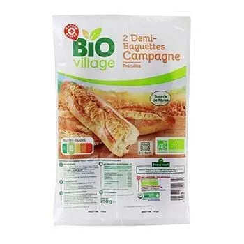 Enjoy the convenience of French-bakery quality at home with Bio Village Pre-baked Half Baguette Bread (x2) 250 g. Featuring two half-baguettes made with organic flour and simple ingredients, this product offers a crisp crust and soft interior—perfect for toasting, sandwiches or as an accompaniment to your meals.