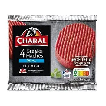 100% French beef mince, Percentage of fat less than 5%, Collagen to meat protein ratio less than 12%.