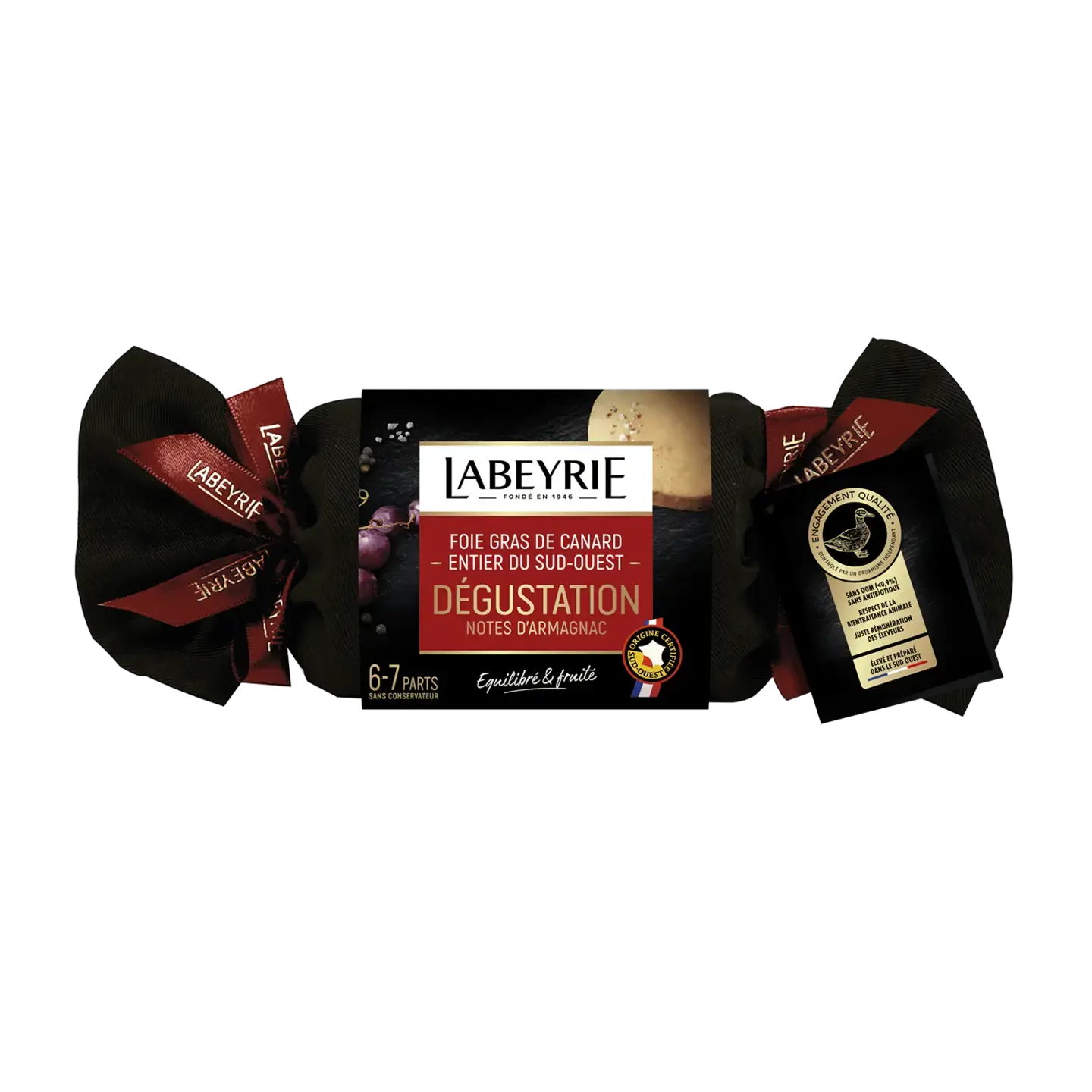 Foie gras de canard du Sud-Ouest (origine France), sel, Armagnac (≈ 1 %), épices, sucre