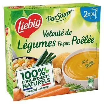 Liebig Pursoup Cream of Vegetable Soup 2x30cl combines the natural taste of garden-fresh vegetables with a touch of cream for a smooth, comforting texture. Carefully prepared without preservatives or artificial colourings, this soup features a blend of wholesome ingredients such as carrots, leeks, and potatoes. Conveniently packed in two 30cl servings, it’s perfect for a quick lunch, light dinner, or warming pause during the day—all with the trusted quality of Liebig.