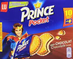 Discover Prince Pocket Chocolate Flavour, a delicious snack biscuit that is easy to take away thanks to its individual bags. Prince Pocket Chocolate Flavour, made with wholemeal wheat and a great chocolate taste, is suitable for children's snacks for their pleasure and that of their parents! 10 bags of 2 biscuits: convenient to take away thanks to its individual bags.