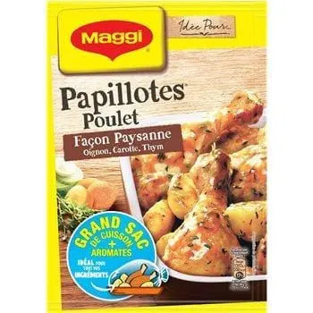 Reinvent your everyday dishes with Maggi Papillotes and its subtle blend of herbs and spices. You're sure to get a delicious, tender, juicy chicken without adding any fat. The country-style recipe is tasty and can be simmered in only a few steps, offering the flavour of onion, garlic, and thyme.