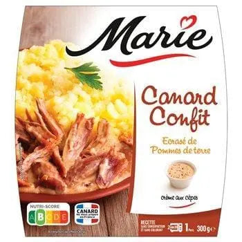 Treat yourself to a moment of true French indulgence with Marie Duck Confit with Crushed Potatoes 300 g. This elegant ready meal pairs succulent duck leg confit, slow-cooked in its own fat for tenderness and depth of flavour, with silky crushed potatoes enriched with butter and seasoning. A comforting dish inspired by the finest traditions of southwestern France, perfect for enjoying a restaurant-quality meal at home in minutes.