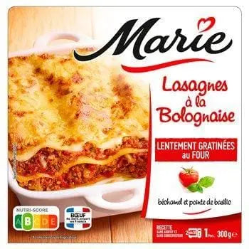 Marie selects beef from France guaranteed by an independent control body. Because au gratin is Marie's expertise, her lasagne is slowly baked au gratin with Emmental cheese.
