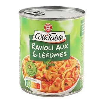 This product contains water, ravioli 27% [durum wheat semolina, water, breadcrumbs (wheat flour, water), broccoli 1%, spinach 1%, carrots 0.8%, sunflower oil, onions 0.3%, cassava starch, salt, basil, flavourings], tomato puree 14 %, carrots 8,9 %, onions 2,6 %, red peppers 1,6 %, green olives 1,6 %, aubergines 1,6 %, herbs, sunflower oil, salt, sugar, modified corn starch, flavourings. May contain traces of celery, milk and eggs.