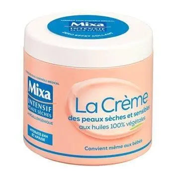 Mixa La Crème des Peaux Sèches et Sensibles is a deeply nourishing body cream specially formulated for dry and sensitive skin. Enriched with a blend of natural vegetable oils, including shea and sunflower oils, this hypoallergenic cream provides long-lasting hydration and relieves tightness and discomfort. Its rich, non-greasy texture melts into the skin, restoring softness, elasticity, and comfort from the first application. Dermatologically tested and trusted by generations, Mixa offers care that’s both gentle and effective.