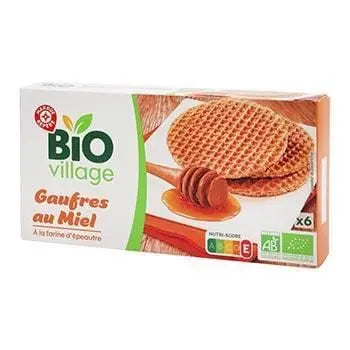 This product is made from a blend of glucose-fructose solution (wheat), palm fat, spelt wheat flour, wheat flour, glucose solution (spelt wheat), cane sugar, honey, soy flour, wheat bran, and a touch of cinnamon. It also contains traces of milk, eggs, and nuts. All ingredients are sourced from organic farming.