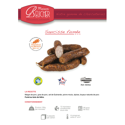 Maison Beucher’s Saucisse de porc fumée x9 offers an authentic taste of French charcuterie tradition. These smoked pork sausages are vacuum-packed to preserve freshness and flavour, with the smoky aroma coming from wood smoking methods. Each pack contains 9 individual sausages, ideal for slicing in salads, serving as cold cuts, grilling, or accompanying hearty mains. Sold by a longtime Breton charcutier with a reputation for artisanal quality.