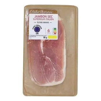 This product is made of pork ham (origin: EU), salt. It may contain traces of milk and nuts. The product is made in Italy and sliced and packed in France.