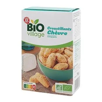 This product is made from organically produced ingredients including wheat flour, shredded dried goat cheese, butter, breadcrumbs, yeast, wheat gluten, salt, whole milk powder, potato starch, natural flavour, onion powder, yeast extract, black pepper, flour treatment agent: ascorbic acid, and wheat malt flour. It is manufactured in the Netherlands with wheat flour processed in the European Union and cheese processed in the Netherlands and/or Switzerland, according to supplies and/or tasting characteristics sought.