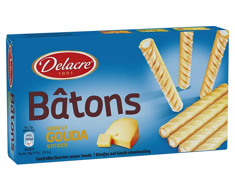 Tasty, light and crispy Gouda-flavoured aperitif biscuits. Savour each Bâton one after the other, or bite into them all at once!