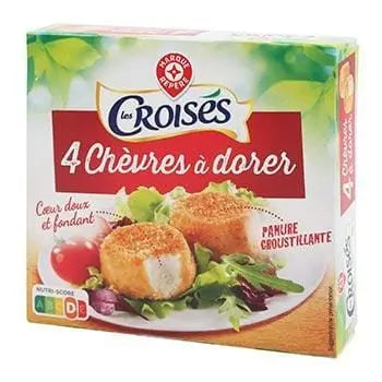 Goat's cheese 70% (pasteurised goat's milk (origin: EU), salt, lactic ferments, coagulant), breadcrumbs 14% (wheat flour, wheat gluten, salt, yeast, olive oil, raising agents: E450, E500), sunflower oil, wheat flour, water, salt.