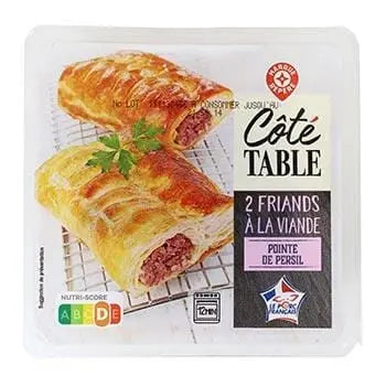 Wheat flour 29%, Bean flour, Malted wheat flour, Pork 27.6% (origin: France), Water, Margarine (Palm fat, Water, Rapeseed oil, Emulsifier: E471, Acidifier: Citric acid), Potato starch, Salt, Shallots, Yeast, Parsley 0.7%, Powdered egg yolk, Egg yolk, Thyme, Bay leaves, Pepper, Preservative: E250. May contain traces of milk, fish, molluscs, crustaceans, celery, mustard, soya and nuts.