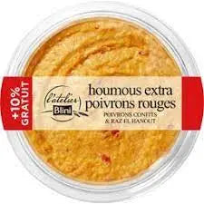 Hummus enhanced by the sweetness of red pepper and a hint of Raz el hanout.