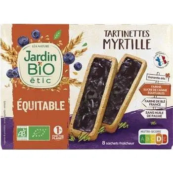 WHEAT flour, blueberry filling (WHEAT syrup, brown cane sugar, blueberry puree 7%, sunflower oil, natural blueberry flavouring with other natural flavourings, concentrated lemon juice, gelling agent: pectins), brown cane sugar, hard WHEAT semolina, sunflower oil, cocoa butter, salt, raising agents: ammonium carbonates and sodium carbonates. *Products from organic farming. May contain traces of : SESAME, LUPIN, SOYA, EGGS, MILK and NUTS.
