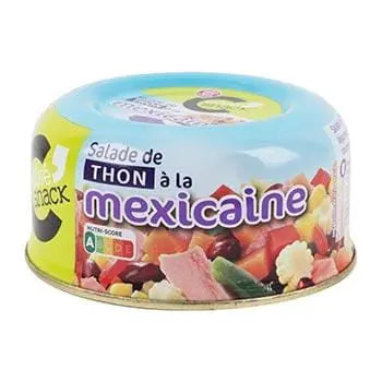 Pre-cooked chopped tuna 23%; pre-soaked kidney beans 19% (kidney beans, water); water; red peppers 9%; corn 7.1%; green beans 6.2%; carrots 5.7%; onions 5.7%; baby corn slices 5.2%; rapeseed oil; spirit vinegar; salt; double tomato paste; natural flavouring; spices; thickener: guar gum.