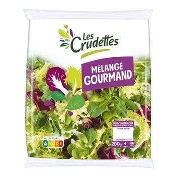 This product is a blend of fresh greens including frisée (min 40%), lamb's lettuce (min 10%), and red chicory (min 10%).