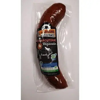 Pork meat and fat (origin France-Haut de France), water, spices, dextrose, salt, stabilizers: diphosphates, triphosphates, saccharose, garlic spice 4%, natural flavour, aromatic plant spices, antioxidant: sodium ascorbate, colour: carmine, preservative: sodium nitrite.