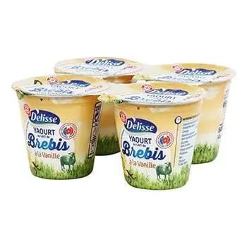 This product is made from Ewe's milk with 3% fat, sourced from France. It also contains 5.6% sugar, natural vanilla flavouring, and LACTIC ferments.
