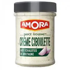 Huile de colza, eau, crème fraîche 15%, vinaigre d'esprit, ciboulette réhydratée 3,1%, échalote provenant de Bretagne 3%, jaune d'œuf, amidon de pomme de terre modifié, sucre, sel, jaune d'œuf en poudre, oignon en poudre, acidifiant : acide lactique, épaississant : gomme xanthane, conservateur : sorbate de potassium, poivre noir.
