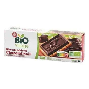 Chocolat noir 48% (sucre de canne, pâte de cacao, beurre de cacao, poudre de lait entier, arôme naturel de vanille); farine de blé 37%; sucre glace de canne; graisse de palme; poudre de lait écrémé; agents levants : E503, E501; sel; poudre de jus de citron. Ingrédients issus de l'agriculture biologique. Pays de fabrication : FRANCE. FARINE DE BLÉ TRANSFORMÉE EN : ALLEMAGNE, BELGIQUE, FRANCE; FARINE DE BLÉ TRANSFORMÉE EN : EUROPE; FARINE TRANSFORMÉE EN : FRANCE ET/OU UNION EUROPÉENNE(*) (*) SELON LES ATTRIBUTS ET/OU CARACTÉRISTIQUES GUSTATIVES RECHERCHÉS