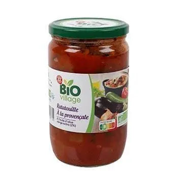 Ce produit contient des courgettes* 36%, des tomates pelées écrasées dans du jus* 20%, des aubergines* 12%, des oignons* 7%, de l'eau, des poivrons rouges* 5%, de la pâte de tomate double* 5%, de l'huile d'olive extra vierge* 2%, de l'huile de tournesol* 2%, du sucre*, de l'amidon de maïs, du sel, du jus de citron concentré*, des plantes aromatiques*, du poivre*. Tous les ingrédients marqués sont cultivés biologiquement.