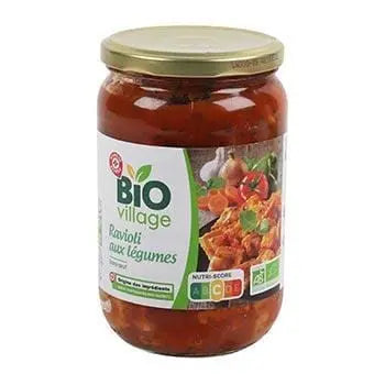 Eau, Ravioli 21% (Semoule de Blé Dur* 13%, Eau, Carottes* 0,8%, Poivrons Verts* 0,8%, Chapelure [Farine de Blé*, Levure, Sel], Oignons* 0,7%, Huile de Tournesol*, Sel, Tomates* 0,01%, Ail*, Épices*), Pâte de tomate double* 6,1%, Oignons et Poudre d'oignon* 2,1%, Carottes* 1,5%, Céleri-rave* 1,5%, Huile de colza*, Sucre*, Sel, Herbes*, Poudre d'ail*, Paprika*, Extrait de levure*, Concentré de jus de citron*. *Ingrédients issus de l'agriculture biologique.