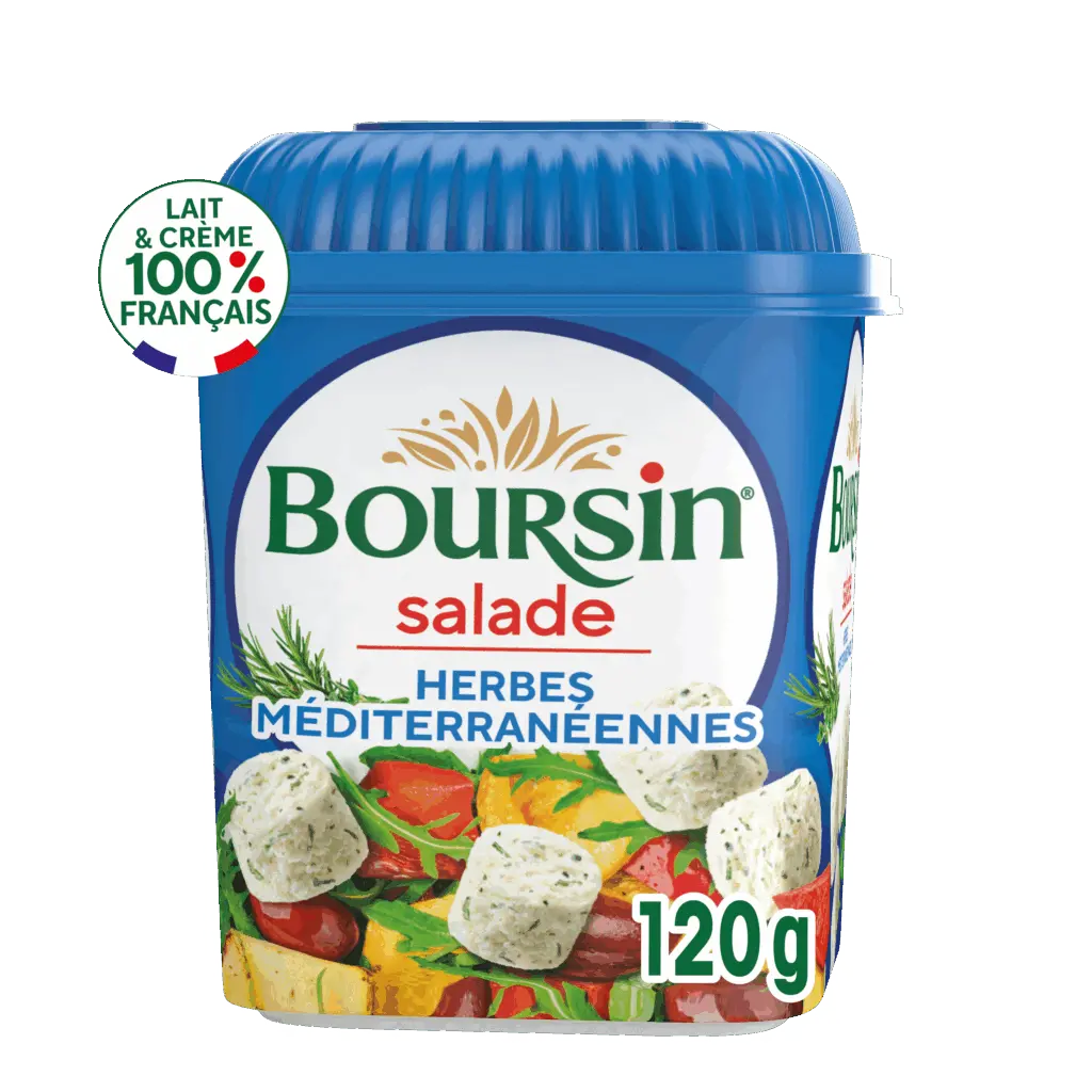 La salade aux herbes méditerranéennes Boursin® est un mélange délicieux de légumes croquants et d'herbes aromatiques, complété par la texture riche et crémeuse du fromage Boursin®. Cette salade capture l'essence de la cuisine méditerranéenne, offrant un plat rafraîchissant et satisfaisant, parfait pour toute occasion.